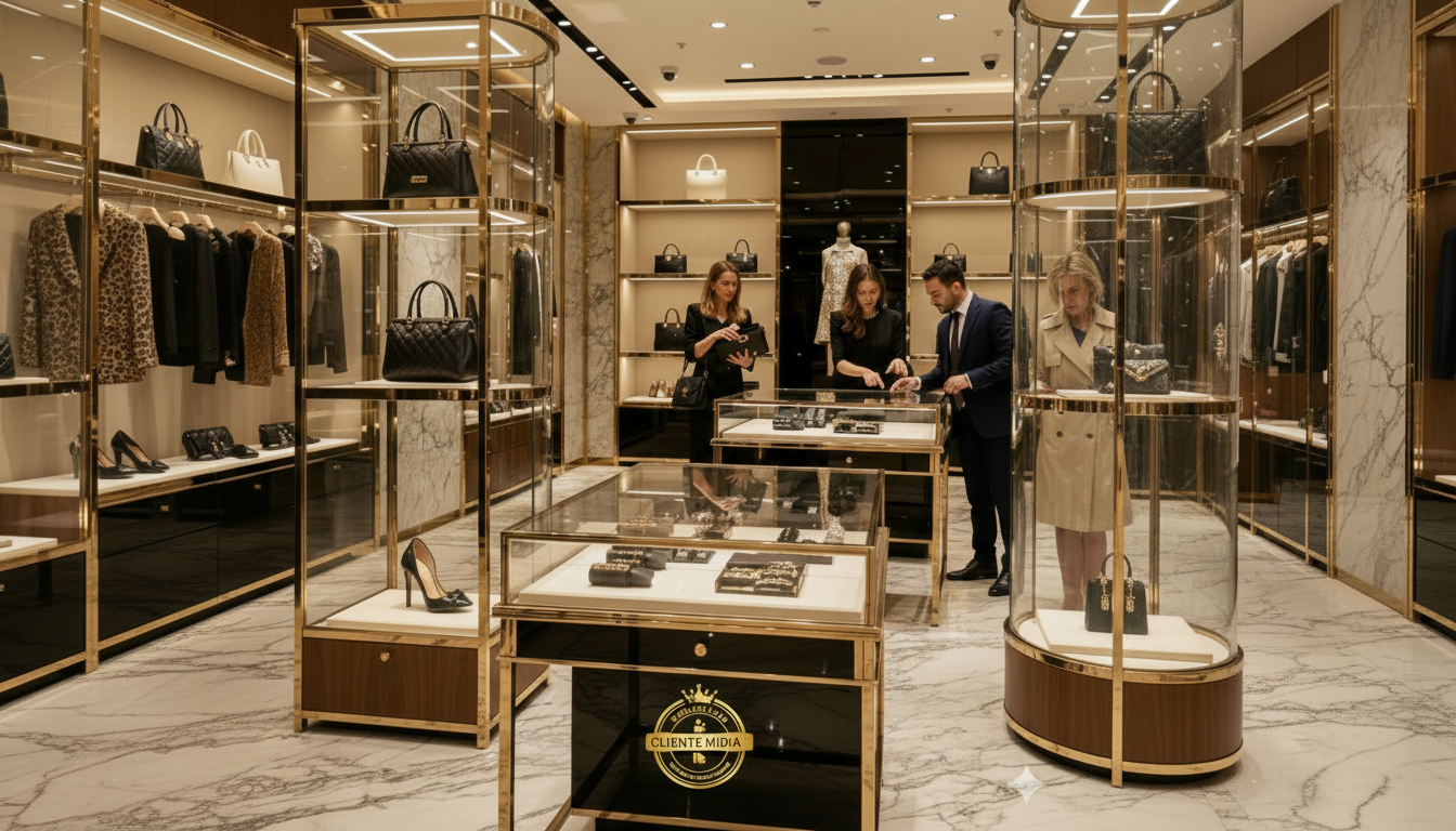 Sua loja recebe uma vitrine digital cinematográfica — onde cada peça é apresentada com o padrão visual da alta moda.